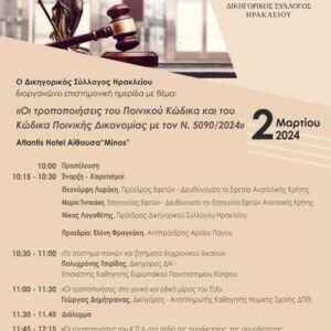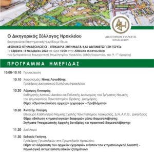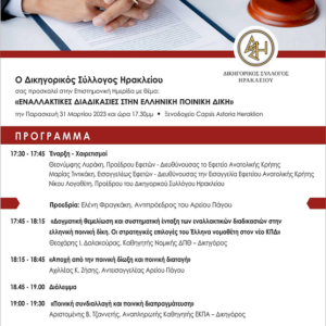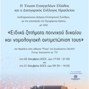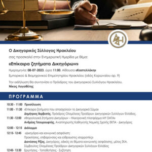 Ενημερωτική ημερίδα με θέμα “Επίκαιρα ζητήματα Δικηγόρων”, στις 8-7-2023, ώρα 11:00 στο Επιμελητήριο Ηρακλείου, αίθουσα “Καστελλάκη”
