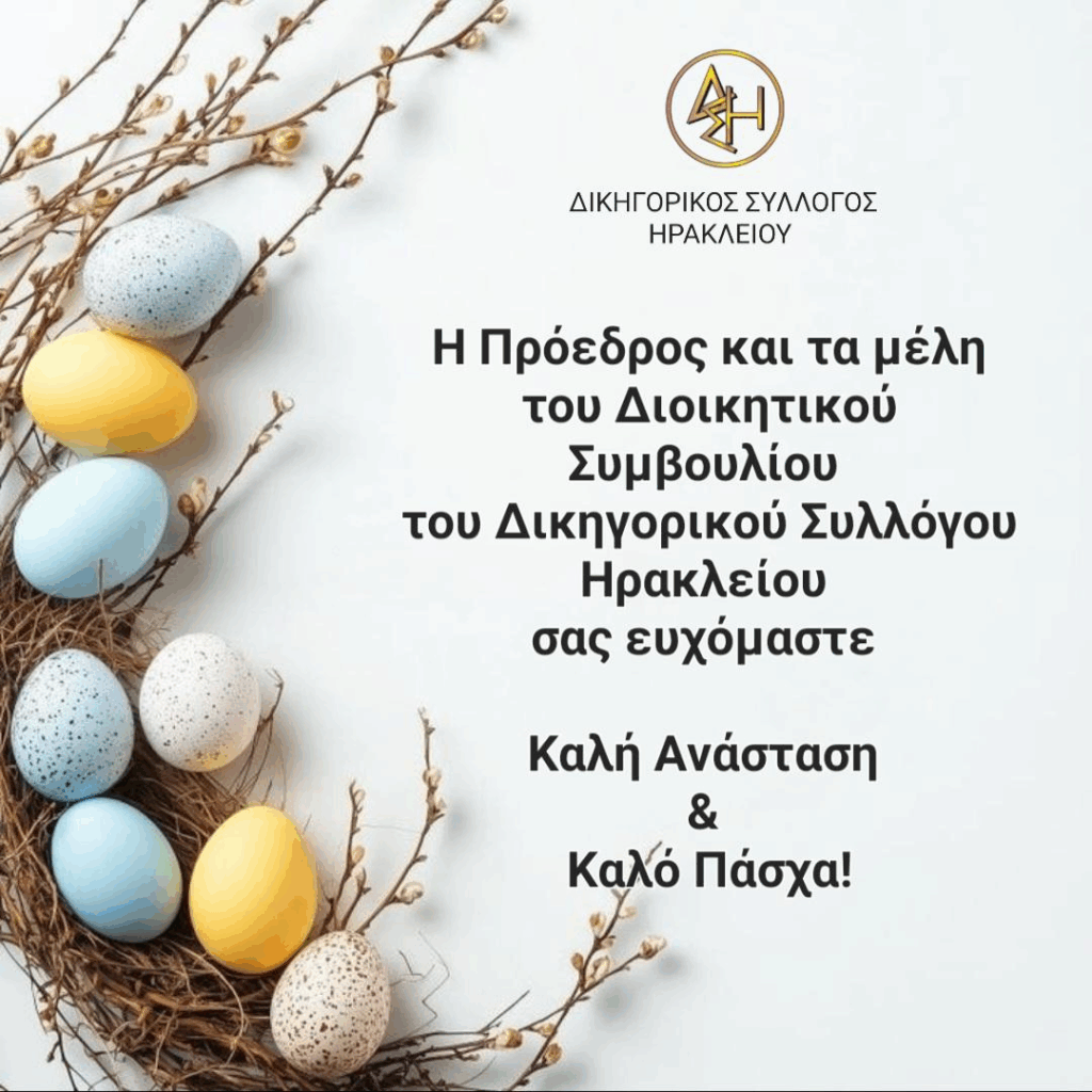 Πασχαλινές ευχές από τον Δικηγορικό Σύλλογο Ηρακλείου.