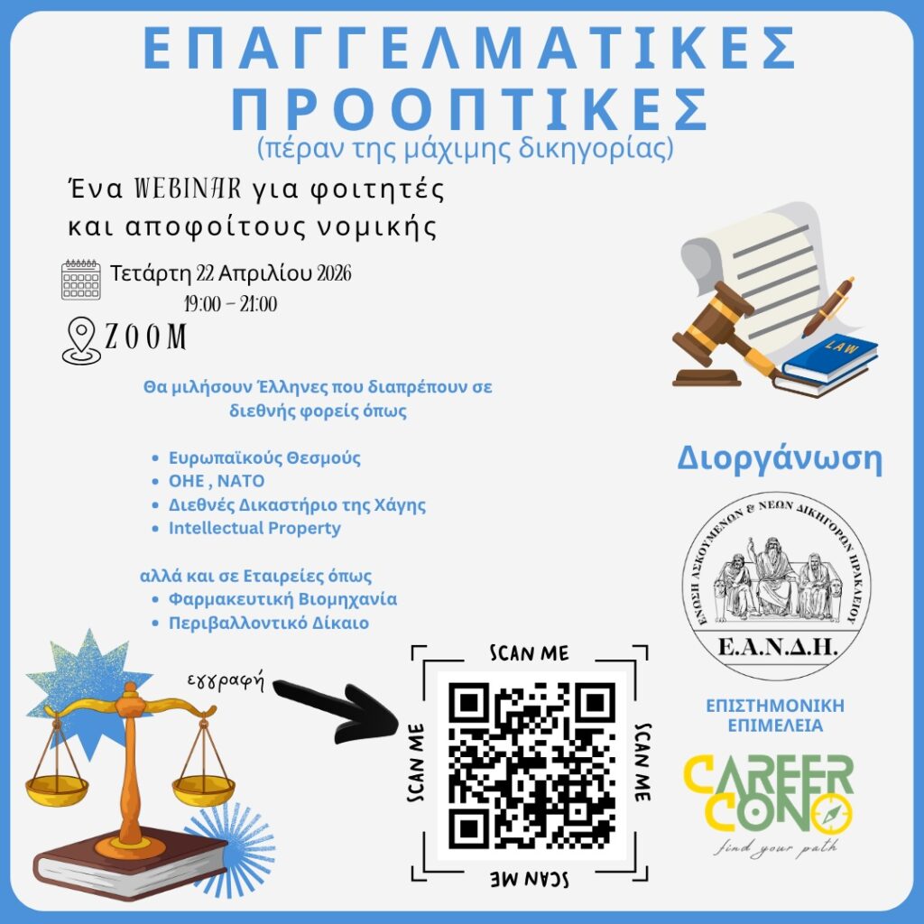 Webinar ΕΑΝΔΗ για επαγγελματικές προοπτικές αποφοίτων Νομικής